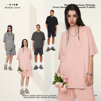 Pedidos a granel Camiseta Fabricante Streetwear Camiseta Ropa personalizada Hombres S Camisetas Algodón Prensa de calor Patrón sólido Lavado ácido