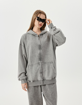 Venta al por mayor de sudadera personalizada 100% algodón en relieve caído hombro cremallera Casual con capucha de invierno de punto liso teñido patrón sólido