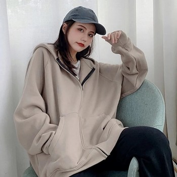 Custom 350g Otoño Invierno Sudaderas con capucha de gran tamaño Zip up Sudadera con parche bordado